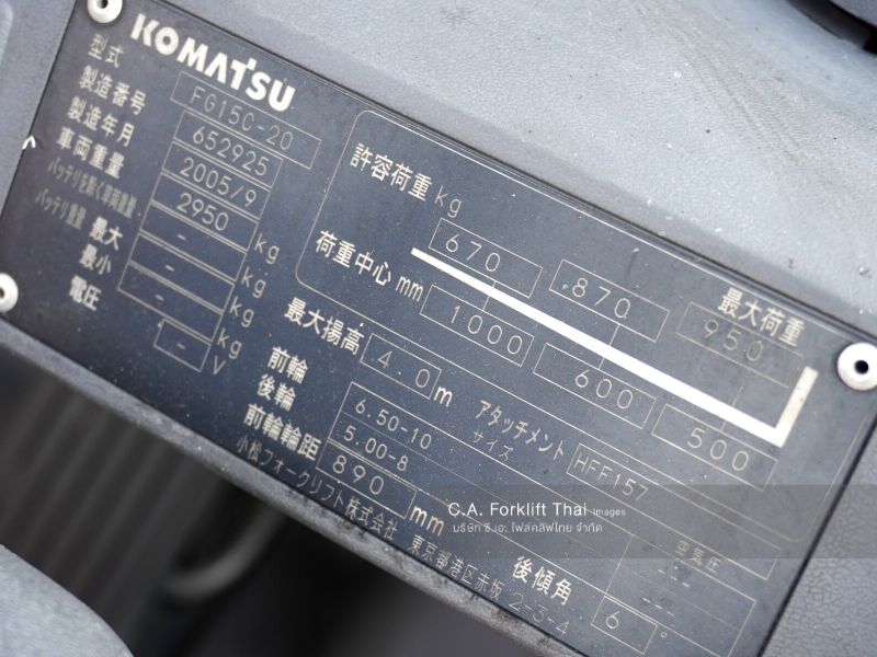 ขาย รถโฟล์คลิฟท์ Komatsu รุ่น FG15C-20 SN:652925